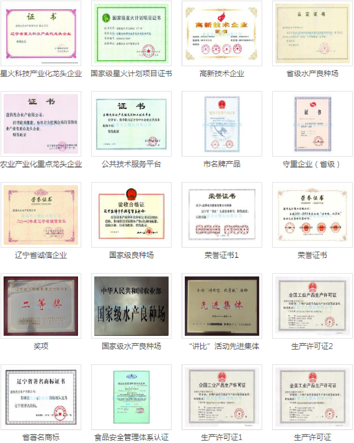 2001年:辽宁省高新技术企业;“东”牌系列水产品获准商标注册
