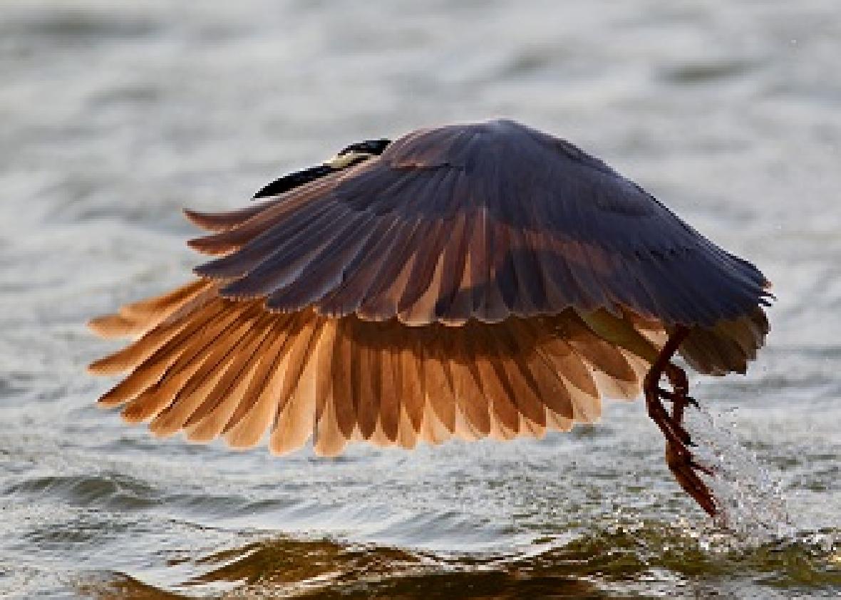 夜鹭捕鱼的方法很有特点。对于较小的鱼来说,它们会用尖尖的、硬硬的上、下喙紧紧夹住。对于稍大一点儿的鱼,它们则会利用上喙先刺透鱼的身体,并同时用上、下喙合拢,牢牢夹住猎物。夜鹭的眼睛有特异功能。每次捕鱼时,头入水的一刹那,它们眼睛的瞬膜(第三眼睑)便迅速遮住双眼,以避免遭到意外伤害和水的污染。出水后,瞬膜则立刻收回,以恢复正常情况下的良好视力。